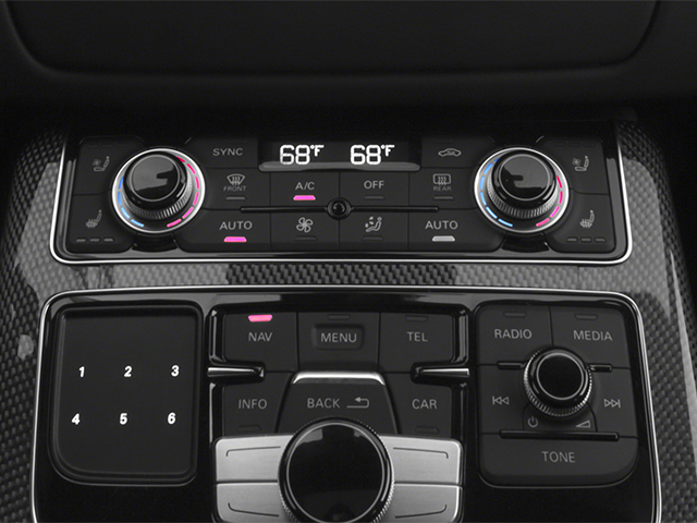2013 Audi S8 4.0T Daytona Gray Pearl S8 4.0T quattro, 4D Sedan, 4.0L V8 TFSI DOHC, 8-Speed Automatic with Tiptronic, quattro, Daytona Gray Pearl, Black Leather, 14 Speakers, 22-Way Comfort Sport Seats, 4-Wheel Disc Brakes, 9.0J x 21 5-Triple-Spoke Design Wheels, ABS brakes, Adaptive suspension, Air Conditioning, AM/FM radio, Anti-whiplash front head restraints, Auto High-beam Headlights, Auto tilt-away steering wheel, Auto-dimming door mirrors, Auto-dimming Rear-View mirror, Auto-leveling suspension, Automatic temperature control, Bang & Olufsen Advanced Sound System, Brake assist, Bumpers: body-color, CD player, Cold Weather Package, Compass, Delay-off headlights, Door auto-latch, Driver door bin, Driver vanity mirror, Dual front impact airbags, Dual front side impact airbags, DVD-Audio, Electronic Stability Control, Exterior Parking Camera Rear, Four wheel independent suspension, Front anti-roll bar, Front Bucket Seats, Front dual zone A/C, Front fog lights, Front reading lights, Garage door transmitter: HomeLink, Head restraints memory, Headlight cleaning, Heated door mirrors, Heated front seats, Heated Rear Seats, Heated Steering Wheel, HVAC memory, Illuminated entry, Knee airbag, Leather steering wheel, Low tire pressure warning, Memory seat, Night Vision Assistant, Occupant sensing airbag, Outside temperature display, Overhead airbag, Overhead console, Panic alarm, Passenger door bin, Passenger vanity mirror, Power adjustable front head restraints, Power door mirrors, Power driver seat, Power moonroof, Power passenger seat, Power steering, Power windows, Radio data system, Rain sensing wipers, Rear air conditioning, Rear anti-roll bar, Rear dual zone A/C, Rear fog lights, Rear reading lights, Rear seat center armrest, Rear Seat Pass-Through w/Ski Bag, Rear side impact airbag, Rear Window Blind, Rear window defroster, Remote keyless entry, Seatbelt memory, Security system, Speed control, Speed-sensing steering, Speed-Sensitive Wipers, Sport steering wheel, Steering wheel memory, Steering wheel mounted audio controls, Tachometer, Telescoping steering wheel, Tilt steering wheel, Traction control, Trip computer, Turn signal indicator mirrors, Valcona Leather Seat Trim, Variably intermittent wipers. 15/26 City/Highway MPGReviews:* If your definition of luxury means an interior that looks as if it were custom-built by the finest artisans just for you, you’ll be more than pleased with what Audi has created inside the 2013 A8 luxury sedan. The choices of leather, wood and soft-touch trim pieces fall together in a way unmatched by cars costing twice as much. Source: KBB.com* Superb engine power; lightweight aluminum body; exceptional interior; innovative safety technologies. Source: EdmundsProudly offering a Carfax on every vehicle.