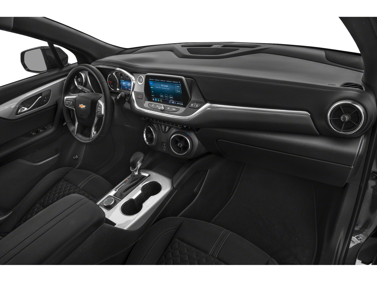 2019 Chevrolet Blazer Premier Black AWD, 3.49 Final Drive Ratio, 4-Wheel Disc Brakes, 6-Way Power Front Passenger Seat Adjuster, 8 Speakers, ABS brakes, Advanced Adaptive Cruise Control, Air Conditioning, Alloy wheels, AM/FM radio: SiriusXM, Apple CarPlay/Android Auto, Auto tilt-away steering wheel, Auto-dimming door mirrors, Auto-dimming Rear-View mirror, Automatic temperature control, Bose Premium 8-Speaker Audio System Feature, Brake assist, Bumpers: body-color, Child-Seat-Sensing Airbag, Compass, Delay-off headlights, Driver Confidence II Package, Driver door bin, Driver vanity mirror, Dual front impact airbags, Dual front side impact airbags, Electronic Stability Control, Emergency communication system: OnStar and Chevrolet connected services capable, Following Distance Indicator, Forward Automatic Braking, Forward Collision Alert, Four wheel independent suspension, Front anti-roll bar, Front Bucket Seats, Front Center Armrest, Front dual zone A/C, Front Pedestrian Braking, Front reading lights, Fully automatic headlights, Garage door transmitter, HD Surround Vision, Heated door mirrors, Heated Driver & Front Passenger Seats, Heated front seats, Heated rear seats, Heated steering wheel, High-Intensity Discharge Headlights, Illuminated entry, IntelliBeam Headlamps, Knee airbag, Lane Keep Assist w/Lane Departure Warning, Leather Shift Knob, Low tire pressure warning, Memory seat, Memory Settings For Driver Seat & Exterior Mirrors, Molded Assist Steps, Navigation System, Occupant sensing airbag, Outside temperature display, Overhead airbag, Overhead console, Panic alarm, Panoramic Tilt-Sliding Power Sunroof, Passenger door bin, Passenger vanity mirror, Perforated Leather-Appointed Seat Trim, Power door mirrors, Power driver seat, Power Liftgate, Power passenger seat, Power steering, Power windows, Preferred Equipment Group 0HD, Radio data system, Radio: Chevrolet Infotainment 3 Premium System, Rear anti-roll bar, Rear Camera Mirror, Rear reading lights, Rear seat center armrest, Rear window defroster, Rear window wiper, Remote keyless entry, Ride & Handling Suspension, Roof rack: rails only, Safety Alert Seat, Security system, Set of 4 Wheel Locks (LPO), Speed control, Speed-sensing steering, Split folding rear seat, Spoiler, Steering wheel memory, Steering wheel mounted audio controls, Sun & Wheels Package, Tachometer, Telescoping steering wheel, Tilt steering wheel, Traction control, Trip computer, Turn signal indicator mirrors, Variably intermittent wipers, Ventilated Driver & Front Passenger Seats, Ventilated front seats, Voltmeter, Wheels: 20 Medium Android Machined-Face Aluminum, Wheels: 21 Pearl Nickel Aluminum, Wireless Charging.Awards:* JD Power Automotive Performance, Execution and Layout (APEAL) StudyProudly offering a Carfax on every vehicle.