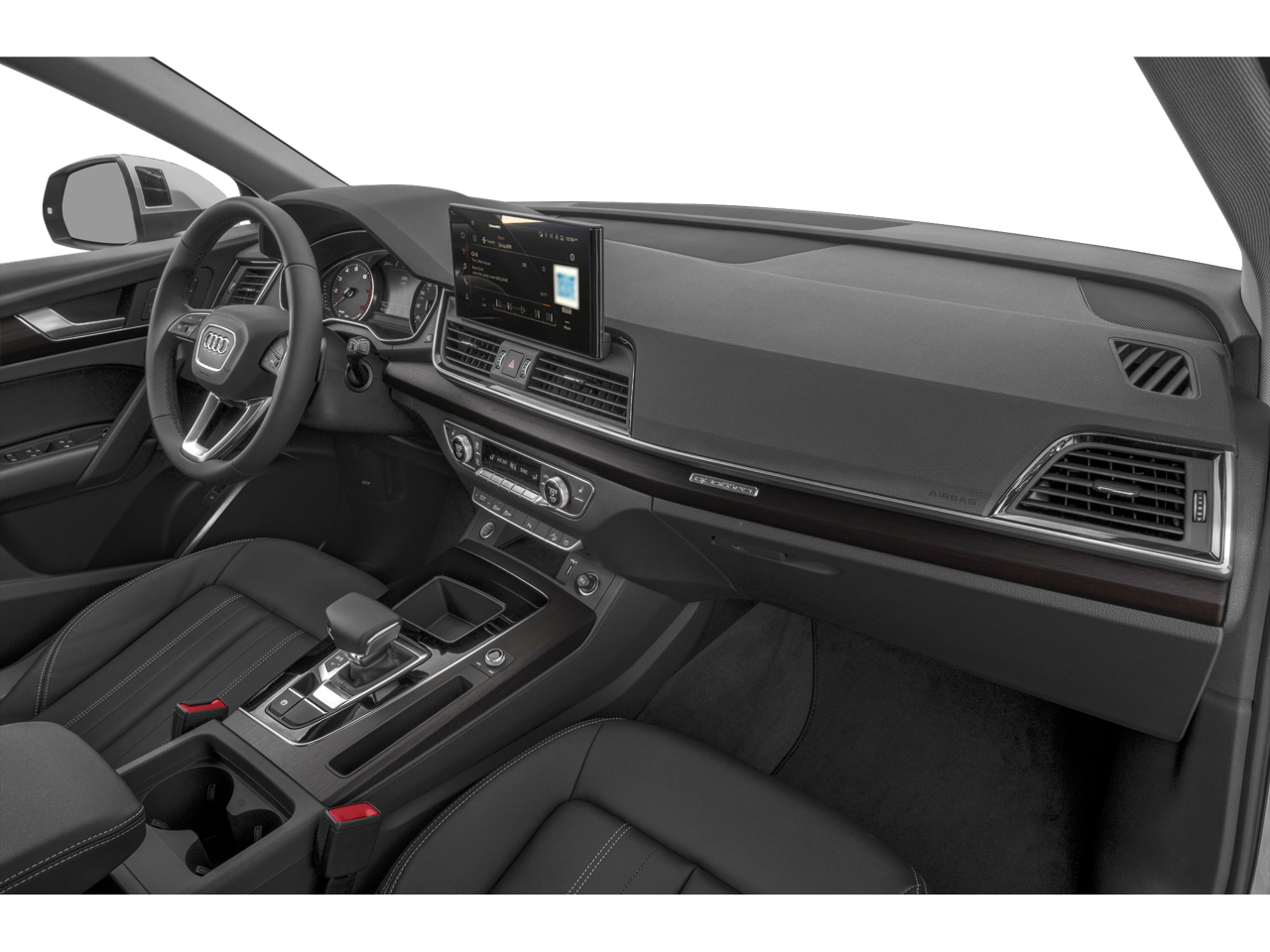 2023 Audi Q5 45 S line Premium Silver Metallic Black Leather, 10 Speakers, 4-Wheel Disc Brakes, ABS brakes, Air Conditioning, All-Weather Floor Mats, Alloy wheels, AM/FM radio, Audi Active Lane Assist, Audi Advanced Key, Audi Beam-Rings, Audi Connect PLUS, Audi Guard Protection Kit, Audi Virtual Cockpit Plus, Auto High-beam Headlights, Auto-Dimming Power Folding Exterior Mirrors, Auto-dimming Rear-View mirror, Automatic temperature control, Axle Ratio: TBD, Bang & Olufsen Sound System w/3D Sound, Black Audi Rings & Badges, Black Exterior Trim, Black Optic Package, Brake assist, Bumpers: body-color, Cargo Mat, Compass, Convenience Package, Delay-off headlights, Driver door bin, Driver Seat Memory, Driver vanity mirror, Dual front impact airbags, Dual front side impact airbags, Electronic Stability Control, Emergency communication system: Audi connect CARE, Exterior Parking Camera Rear, Four wheel independent suspension, Front anti-roll bar, Front Bucket Seats, Front Center Armrest, Front dual zone A/C, Front fog lights, Front reading lights, Garage door transmitter: HomeLink, Genuine wood console insert, Genuine wood dashboard insert, Genuine wood door panel insert, Hands-On Detection Steering Wheel, Heated 8-Way Power Front Bucket Sport Seats, Heated door mirrors, Heated front seats, Heated Steering Wheel, Illuminated entry, Integrated Toll Module Delete (DISC), Leather Seating Surfaces, Leather Shift Knob, Leatherette Covered Center Console & Door Armrests, Low tire pressure warning, MMI Navigation Plus, Navigation Package, Occupant sensing airbag, Outside temperature display, Overhead airbag, Overhead console, Panic alarm, Passenger door bin, Passenger vanity mirror, Power Adjustable Steering Column, Power door mirrors, Power driver seat, Power Liftgate, Power moonroof: Panoramic, Power passenger seat, Power steering, Power windows, Premium Plus Package, Privacy Trunk Cover, Radio data system, Radio: Audi Sound System, Rain sensing wipers, Rear air conditioning, Rear anti-roll bar, Rear fog lights, Rear reading lights, Rear seat center armrest, Rear window defroster, Rear window wiper, Remote keyless entry, Security system, SiriusXM w/360L, Speed control, Speed-sensing steering, Speed-Sensitive Wipers, Split folding rear seat, Spoiler, Steering wheel mounted audio controls, Tachometer, Telescoping steering wheel, Tilt steering wheel, Top View Camera System, Traction control, Traffic Jam Assist, Trip computer, Turn signal indicator mirrors, Variably intermittent wipers, Wheels: 19 5-Double-Arm Design Bi-Color Finish, Wheels: 20 5-Arm Cutter Design, Bi-Color Finish. Clean CARFAX. CARFAX One-Owner. 22/29 City/Highway MPGProudly offering a Carfax on every vehicle.