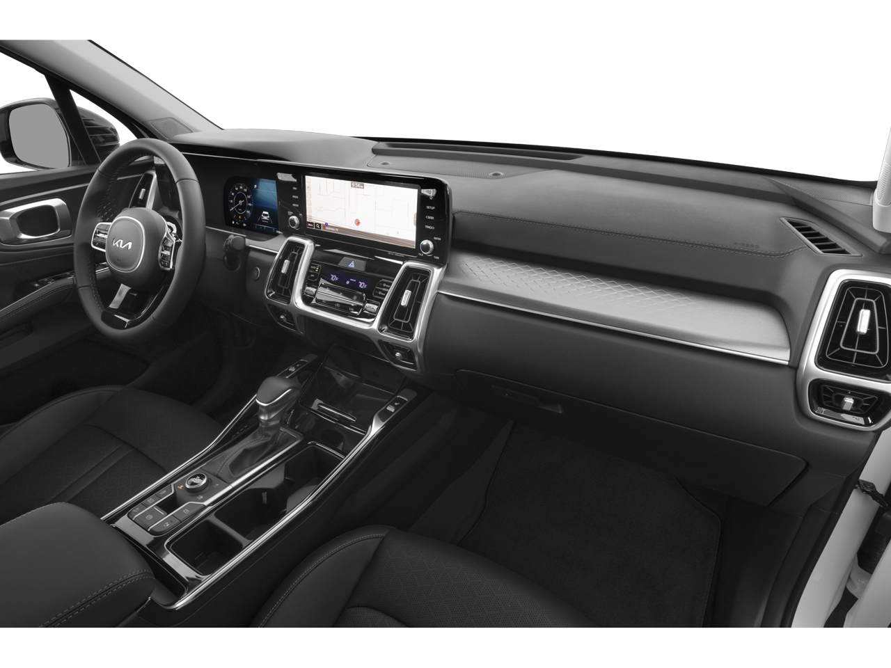 2023 Kia Sorento SX Ebony Black Sorento SX, 4D Sport Utility, 2.5L I4 DGI Turbocharged DOHC 16V LEV3-ULEV70 281hp, 8-Speed DCT, AWD, Ebony Black, Black w/SynTex Artificial Leather Seat Trim, 3.316 Axle Ratio, 3rd row seats: split-bench, 4-Wheel Disc Brakes, 6 Speakers, ABS brakes, Air Conditioning, AM/FM radio: SiriusXM, Apple CarPlay & Android Auto, Auto High-beam Headlights, Auto-dimming Rear-View mirror, Automatic temperature control, Brake assist, Bumpers: body-color, Carpet Floor Mats, Delay-off headlights, Driver door bin, Driver vanity mirror, Dual front impact airbags, Dual front side impact airbags, Electronic Stability Control, Emergency communication system, Exterior Parking Camera Rear, Four wheel independent suspension, Front anti-roll bar, Front Bucket Seats, Front Center Armrest, Front dual zone A/C, Front fog lights, Front reading lights, Fully automatic headlights, Heated door mirrors, Heated Front Bucket Seats, Heated front seats, Illuminated entry, Knee airbag, Leather steering wheel, Low tire pressure warning, Navigation System, Occupant sensing airbag, Outside temperature display, Overhead airbag, Overhead console, Panic alarm, Passenger door bin, Passenger vanity mirror, Power door mirrors, Power driver seat, Power Liftgate, Power moonroof, Power passenger seat, Power steering, Power windows, Radio data system, Radio: AM/FM Audio System, Rain sensing wipers, Rear air conditioning, Rear anti-roll bar, Rear reading lights, Rear window defroster, Rear window wiper, Remote keyless entry, Roof rack: rails only, Security system, Smart Key w/ Push Button and Remote Start, Speed control, Speed-sensing steering, Split folding rear seat, Spoiler, Steering wheel mounted audio controls, SynTex Artificial Leather Seat Trim, Tachometer, Telescoping steering wheel, Tilt steering wheel, Traction control, Trip computer, Turn signal indicator mirrors, Variably intermittent wipers, Wheels: 8.5J x 20 Gloss Black Alloy. Clean CARFAX. CARFAX One-Owner. 22/27 City/Highway MPGProudly offering a Carfax on every vehicle.